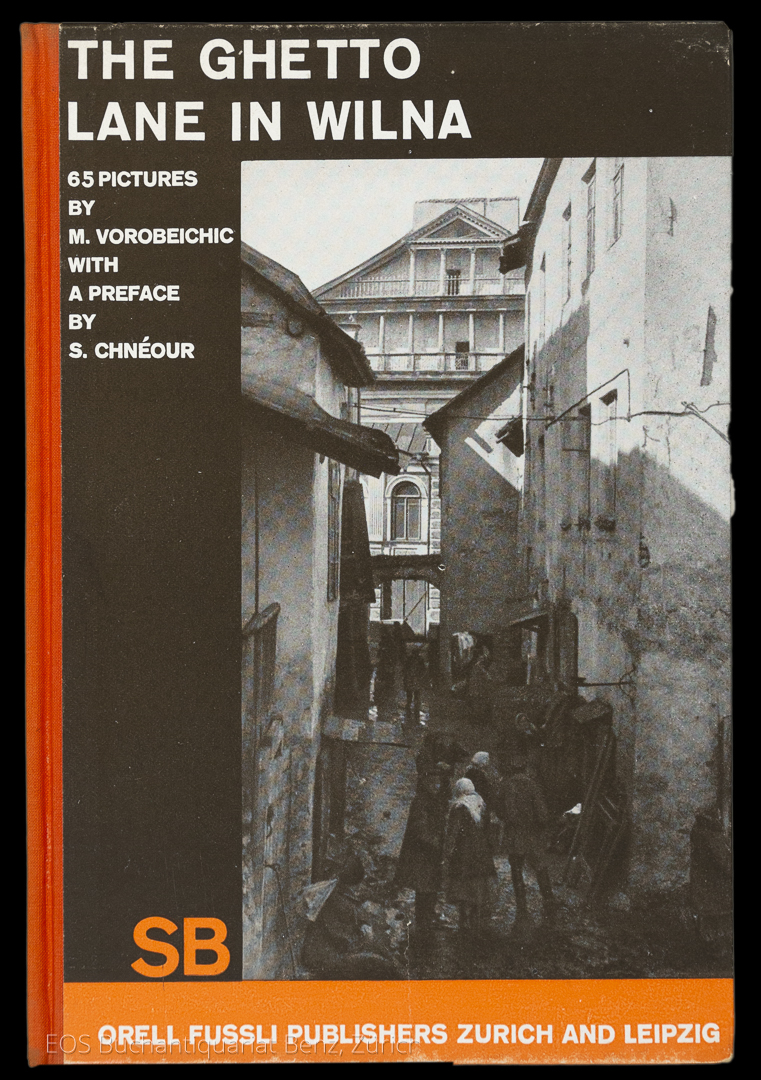 Vorobeichic, M.: The ghetto lane in Wilna 65 Bilder von M. Vorobeichic. Eingeleitet von S. Chneour. Zürich, Leipzig, Orell Füssli Verlag, 1931. 8°. 8 S., (english), 7 S. (hebrew). Mit 65 Abb. nach Photos von M. Vorobeichic. Illustr. Orig.-Halbleinenband (berieben und bestossen). = „Schaubücher“, Bd. 27.