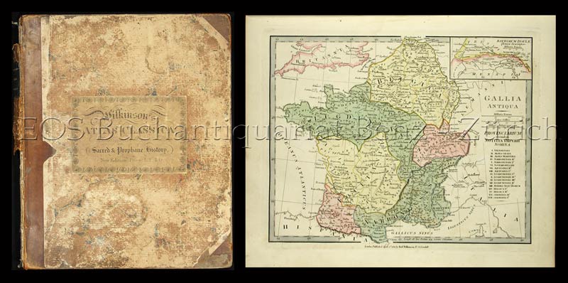 Wilkinson, (Robert): Atlas Classica. Being a collection of maps of the countries mentioned on the ancient authors, both sacred and profane. With their various subdivisions at different periods. London, Hamilton Adams, 1830. Folio. (2) S. Mit 1 gest. Titelblatt, 46 kol. (davon 7 doppelblattgr.) Karten, 7 kol. gest. (davon 1 doppelblattgr.) Zeittafeln. Halblederband der Zeit.