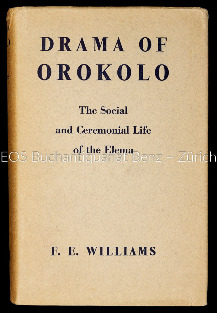 Williams, Francis Edgar:  Drama of Orokolo. the social and ceremonial life of the Elema. Oxford, Clarendon Pewaa, 1940. XXIV, 464 Seiten, 62 Blatt. zahlreiche Illustrationen, graphische Darstellungen und Karten. Leinenband mit geprägter Rückenbeschriftung. Mit Schutzumschlag.